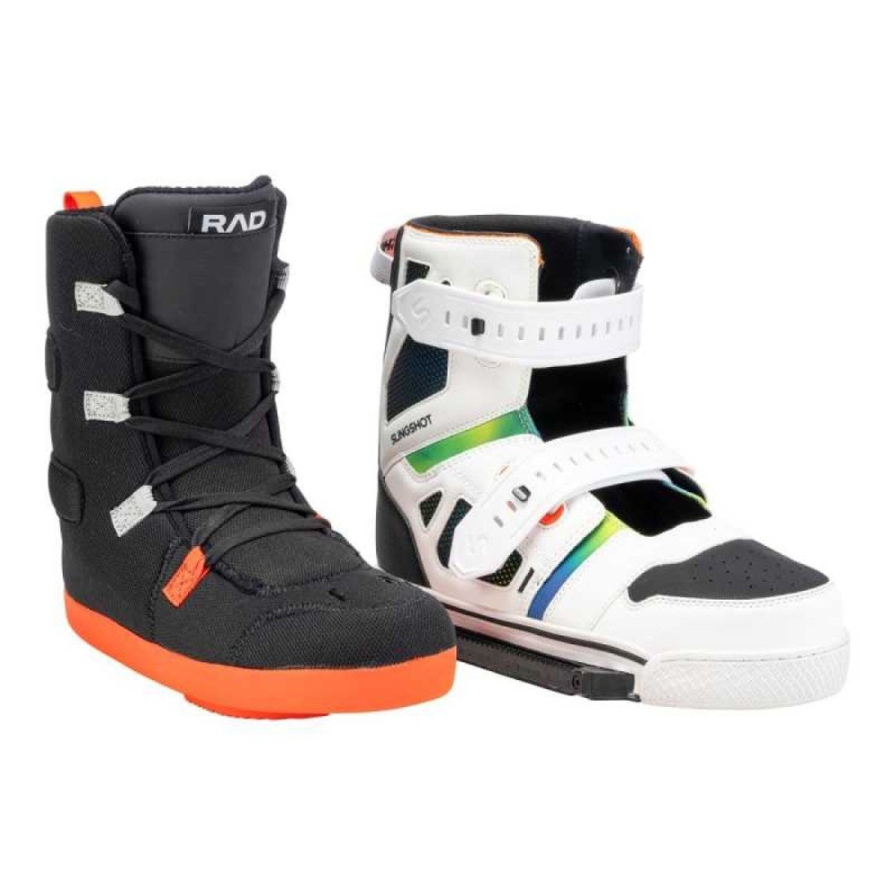 The RAD boot carries a decade strong legacy as the highest performance wakeboard boot from Slingshot. NEW in recent years is the removeable liner which makes wakeboarding at the cable park far more comfortable. New for 2026 is the unisex design and ultralight material choices for the entire community of wakeboarders to embrace. The RADs deliver comfort, protection, and STYLE throughout the entirety of the session and are by far the simplest & quickest boots to get in and out of.